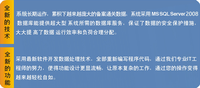 系统采用MS SQL Server2008大型数据库,运用最新的软件开发数据处理技术和设计理念,结合舟金科技10年外贸进出口专业信息化管理系统服务经验,保障了系统的功能设计更加合理,数据处理更加流畅,业务操作、分析管理更加人性化和实用。